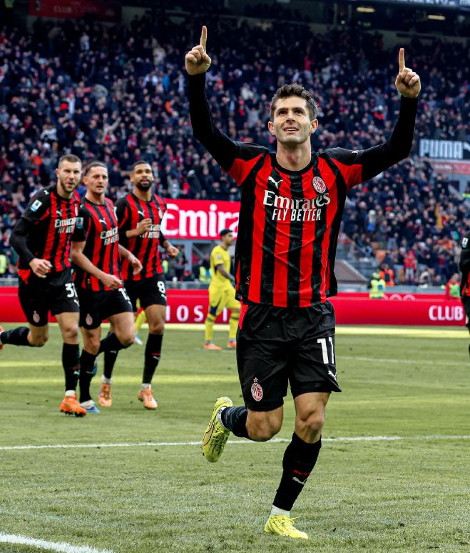 不过半场比赛结束之前,美国队长普利西奇还是帮助AC米兰在主场率先取得了进球,右侧角球开出后,拉比奥特头球摆渡到后点,普利西奇左脚垫射建功,帮助红黑军团带着1-0的优势,回到了中场更衣室。