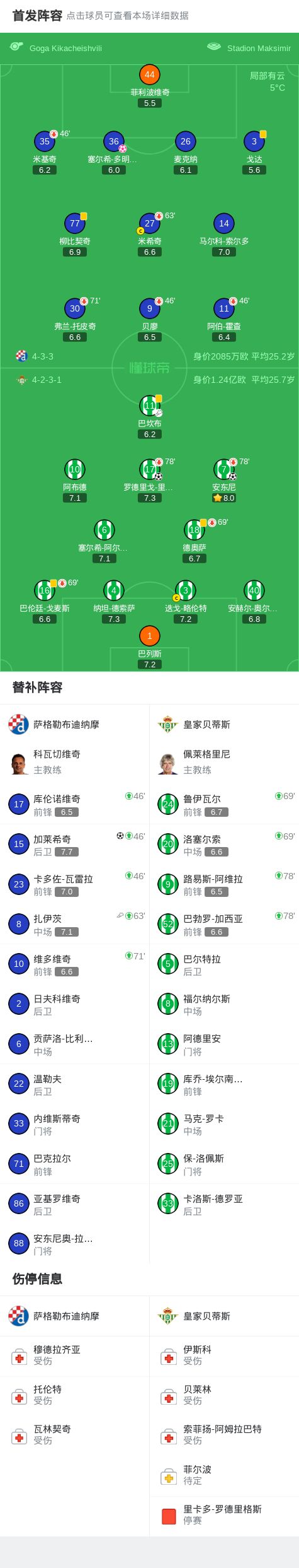 - 半场3-0萨格勒布迪纳摩,贝蒂斯队史第二次欧战上半时打进3球