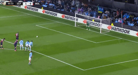 第66分钟,波贝加造点,贝尔纳代斯基主罚命中,博洛尼亚1-1塞尔塔